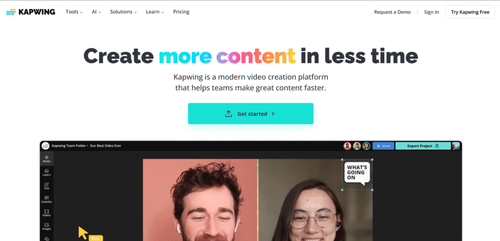 Kapwing is a very popular online video editor. Now, it has added many AI tools. It is perfect for making videos for Instagram, TikTok, and YouTube Shorts. It is fast, simple, and gets the job done.