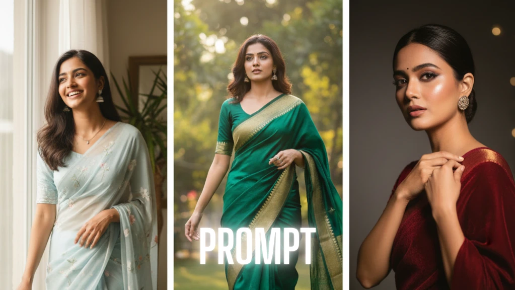Gemini AI Saree Photography Prompts – Gorgeous Indian Saree Look Copy Paste