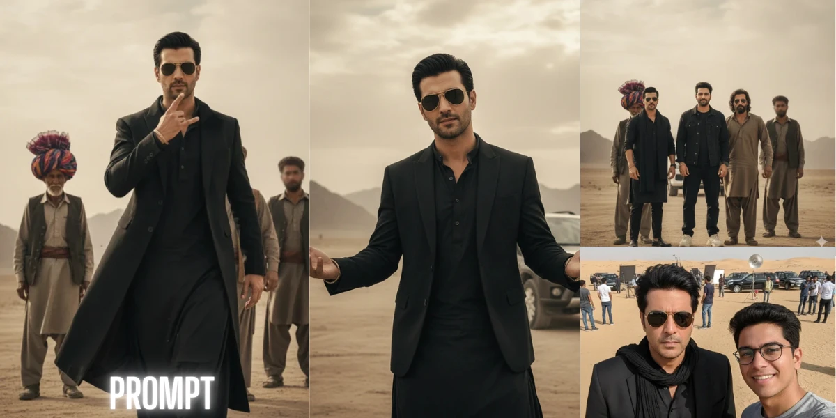 The Rehman Dakait look is all about strong personality expression. It includes rugged features, textured clothing, deep shadows, harsh lighting, and a dramatic environment. This style blends realism with a slightly stylized cinematic tone that feels raw yet polished. When using AI tools like Gemini, Midjourney, or DALL·E, prompts must be very specific to capture the atmosphere, costume detail, and intense expression that define this aesthetic.
