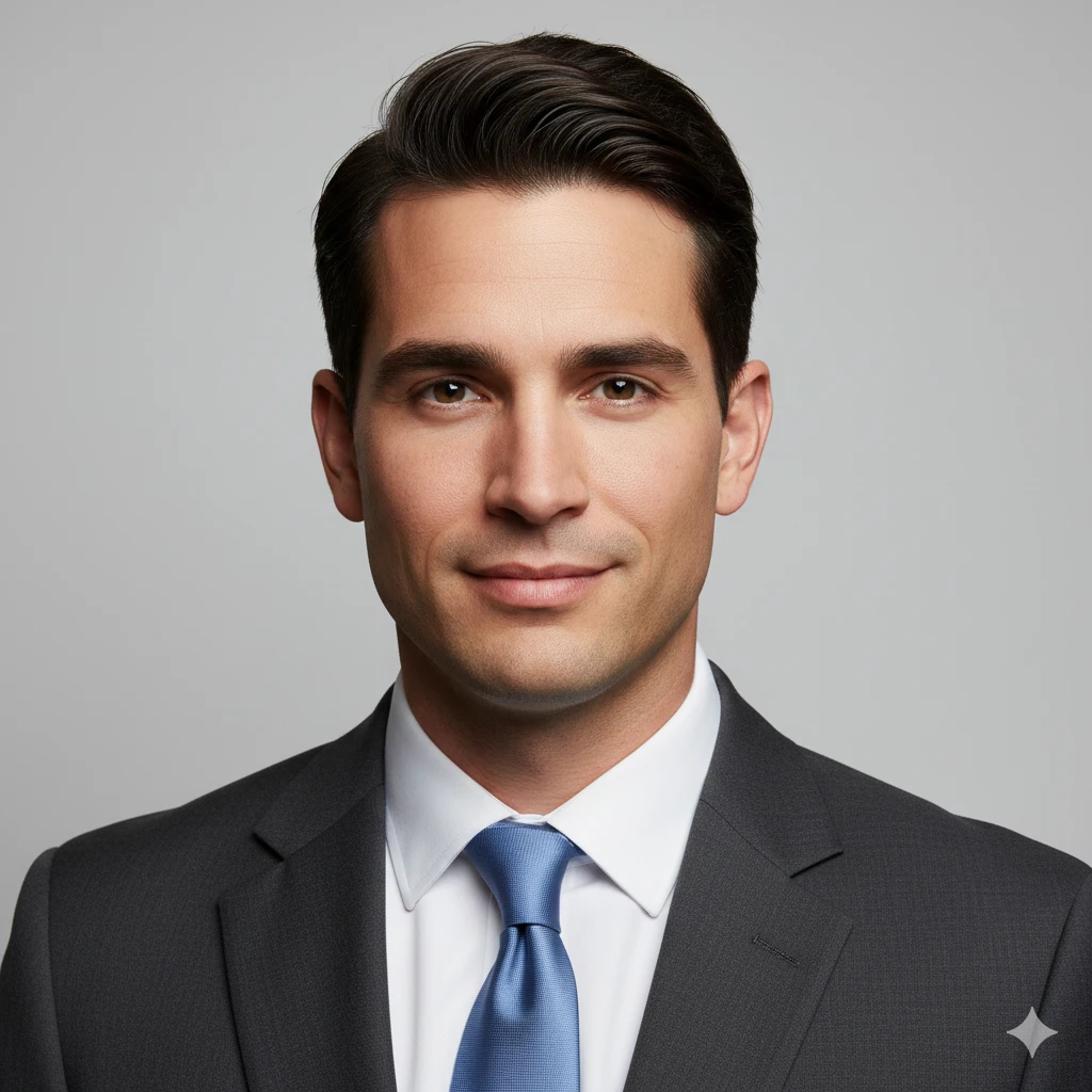 A professional man wearing a formal blazer, neutral background, soft lighting, confident expression, clean corporate headshot, realistic skin tone, high resolution